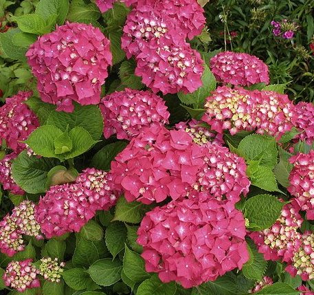 Кустарник высотой 1 – 2м. При выращивании в контейнерах имеет высоту 0.4 – 0.6м. У крупнолистной гортензии плотная ярко-зеленая листва, прошлогодние побеги одревесневшие, текущего года – зеленые, травянистые, древеснеют только в следующем году. Так же как и остальные, крупнолистные гортензии цветут на концах однолетних побегов. Требует укрытия на зиму.